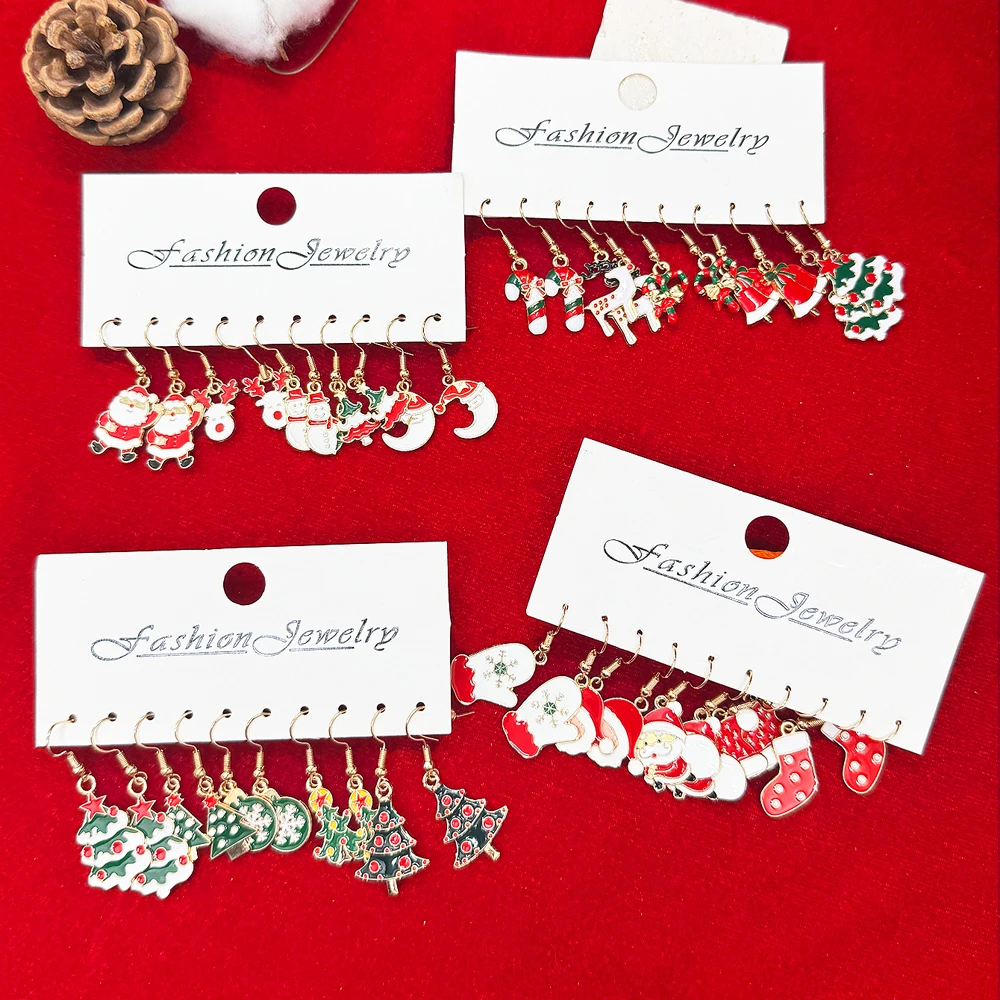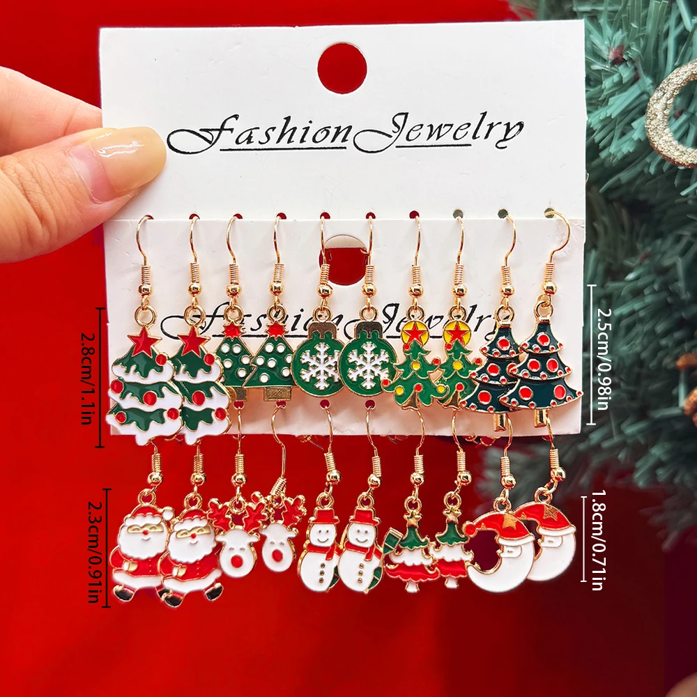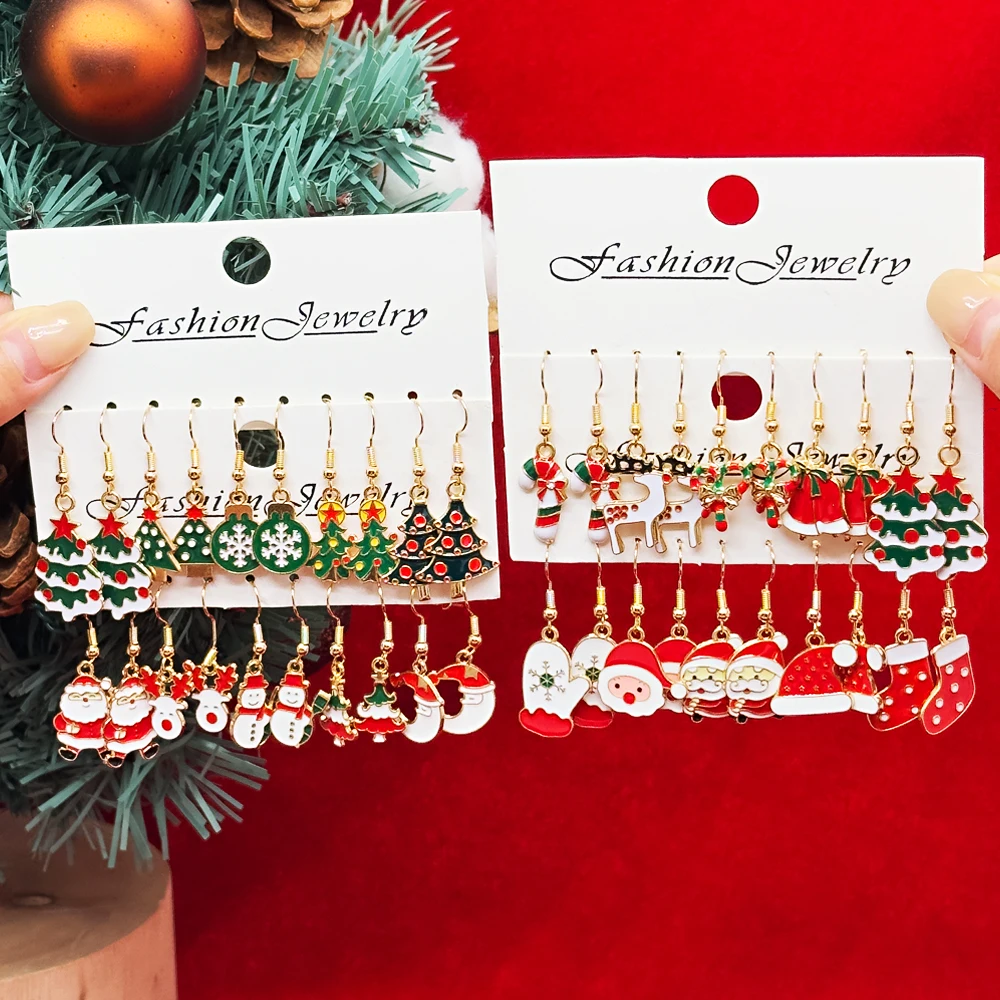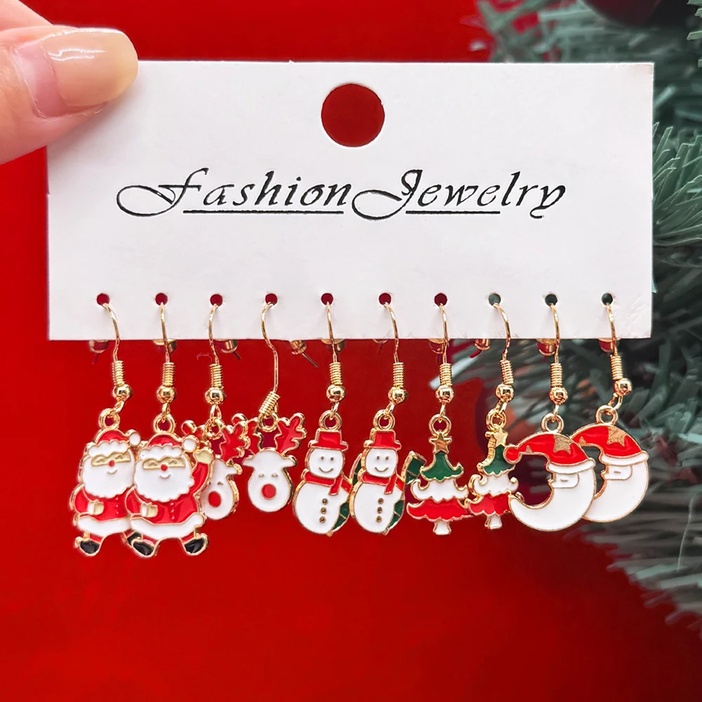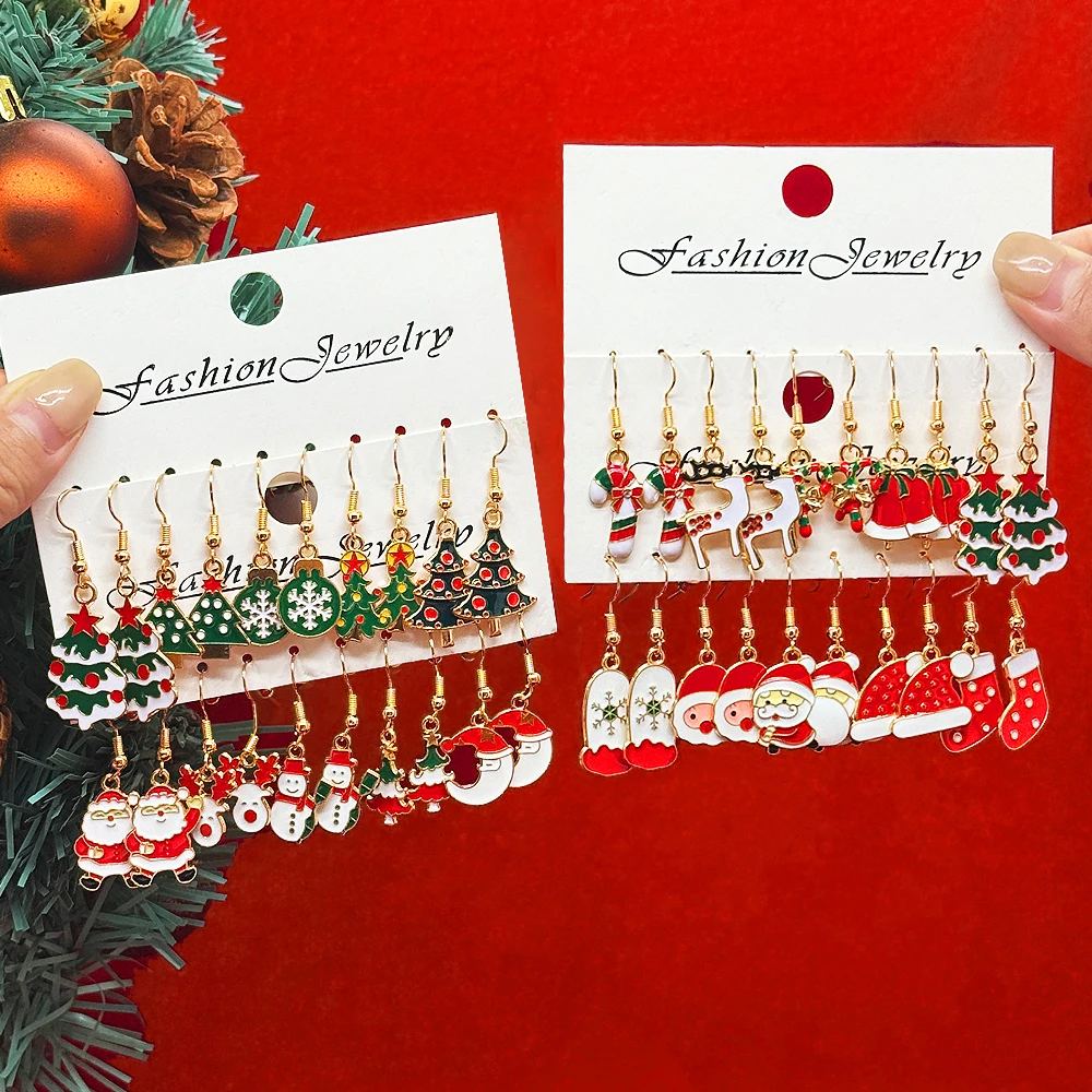 20Pairs/5Pairs Women Christmas Earrings Oil-dripping Christmas Tree Santa Claus Snowman Pendant Earrings Christmas Gift Jewelry