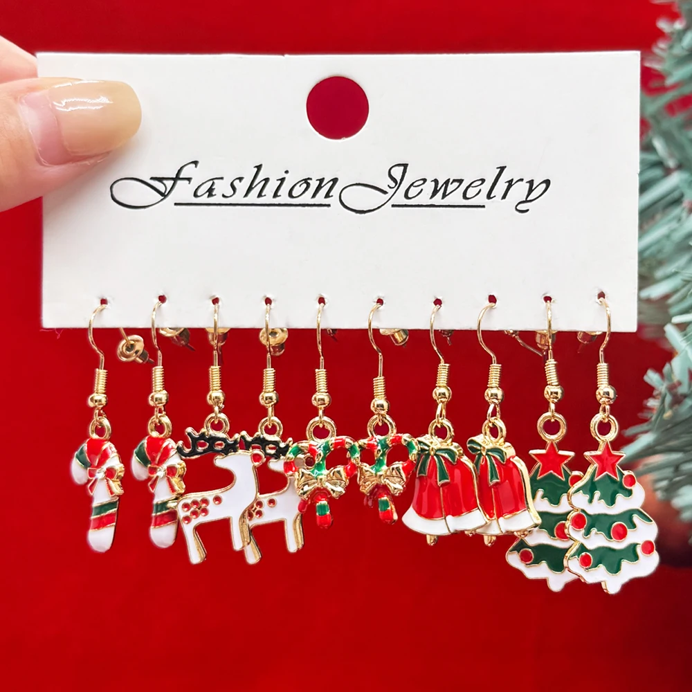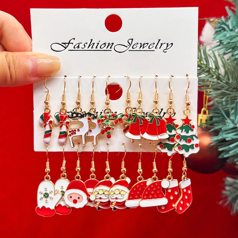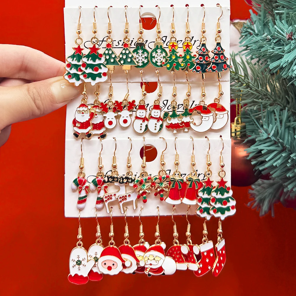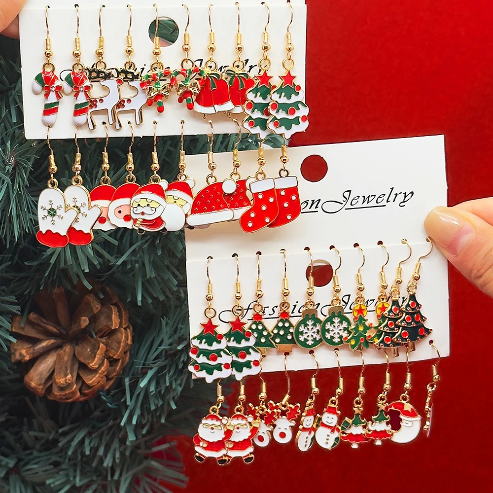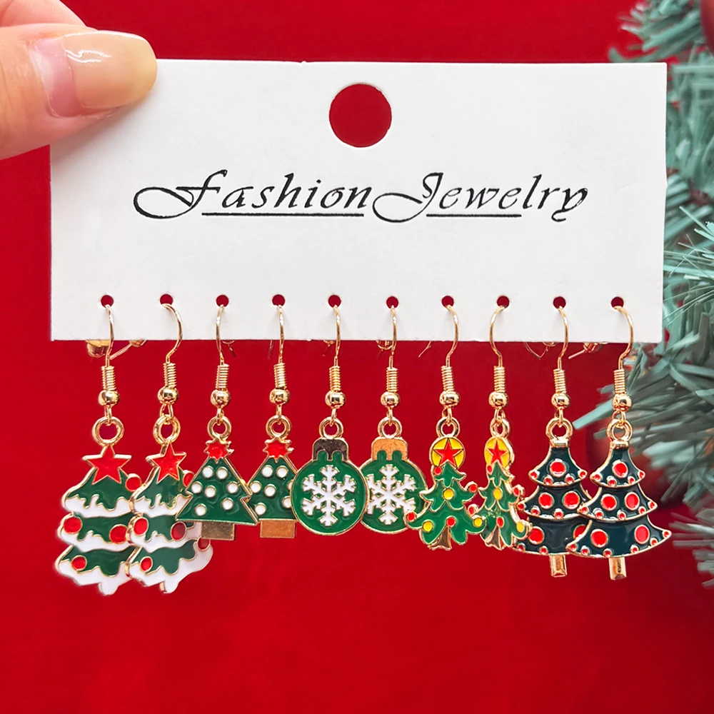 20Pairs/5Pairs Women Christmas Earrings Oil-dripping Christmas Tree Santa Claus Snowman Pendant Earrings Christmas Gift Jewelry