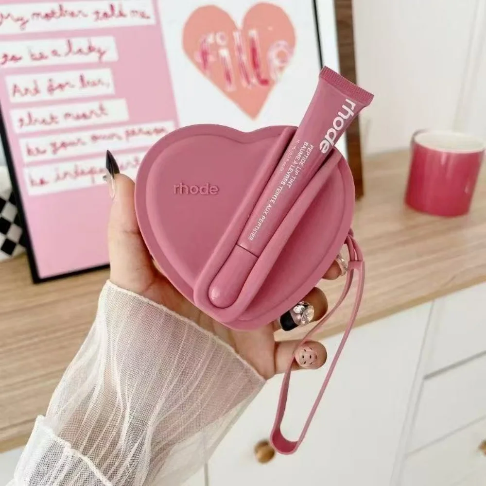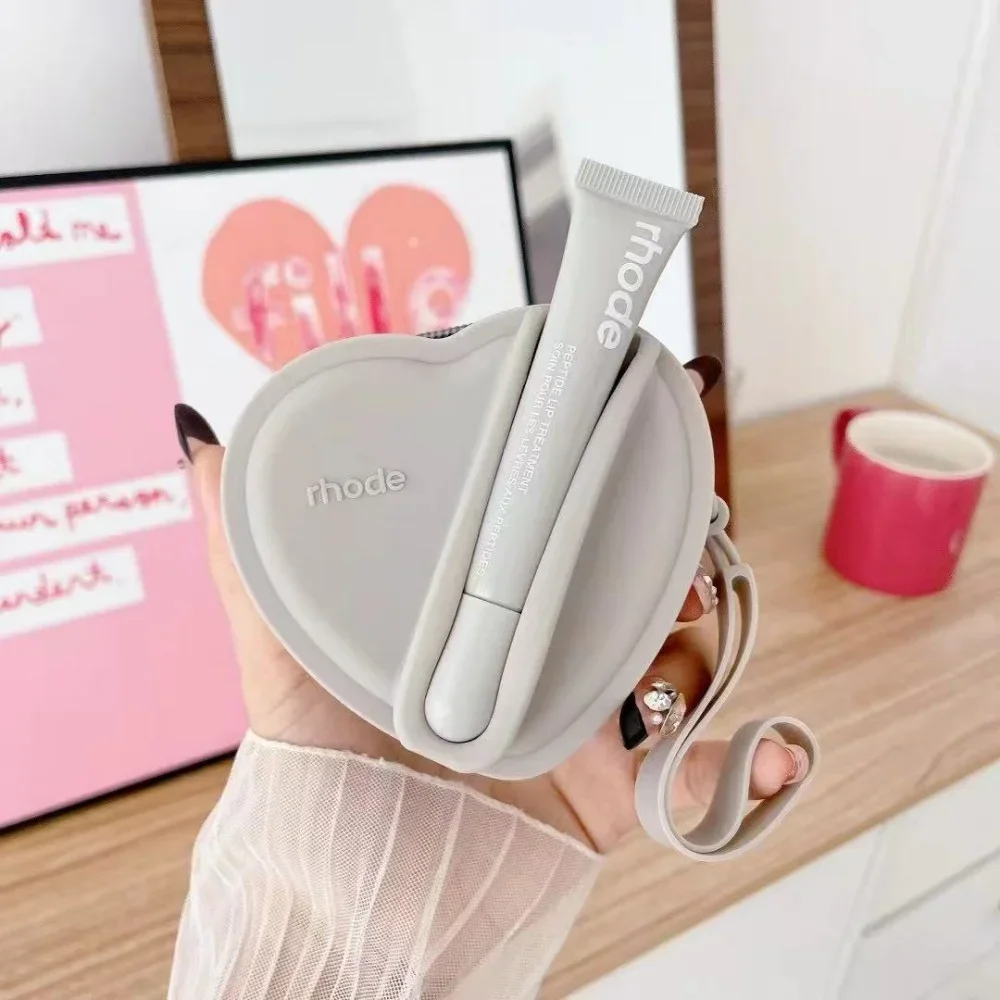 Rhode Lipstick 3D Heart Wallet Organizer Coin Purse Lip Glaze Holder Soft Silicone Lip Gloss Earphone Bags Toast Ribbon Espresso